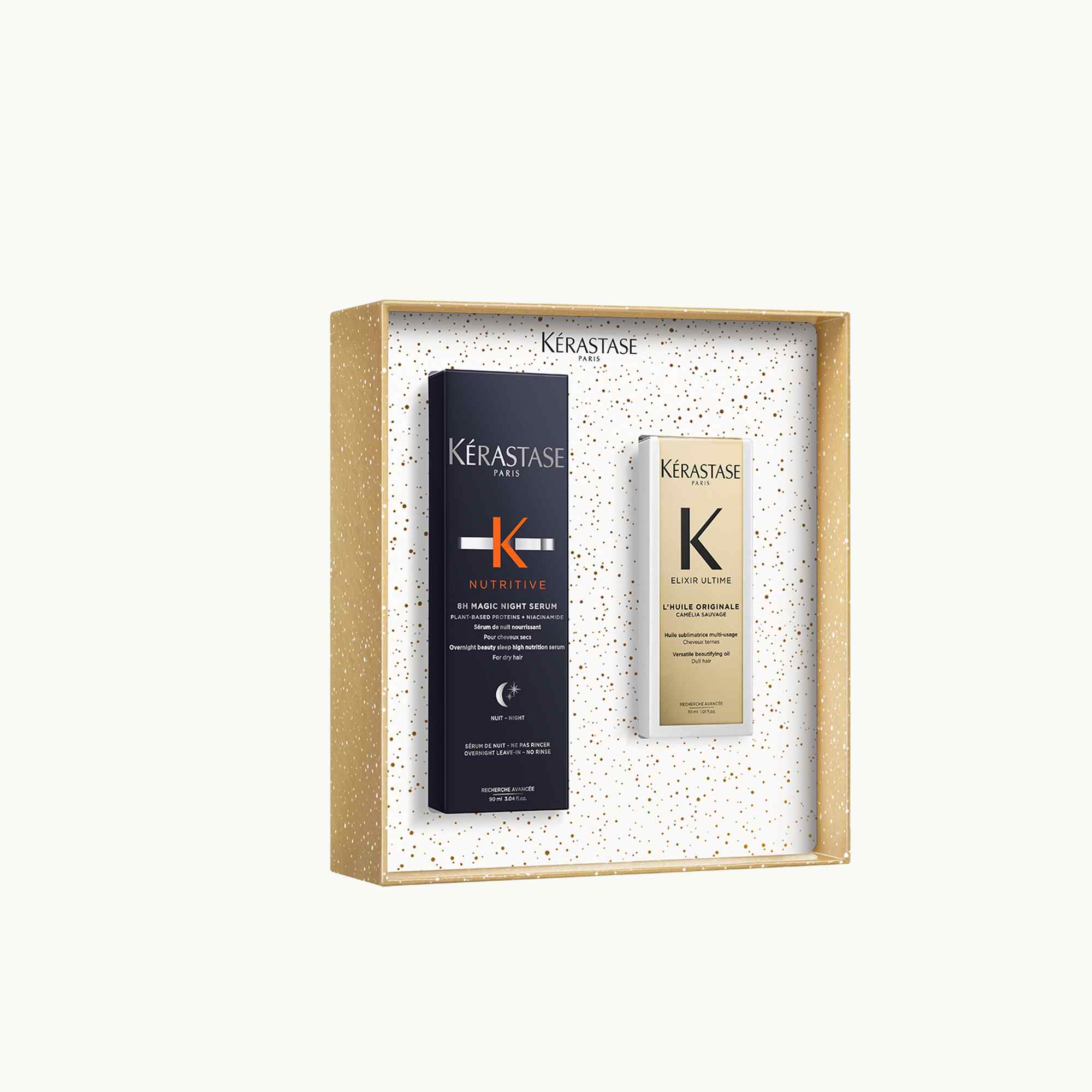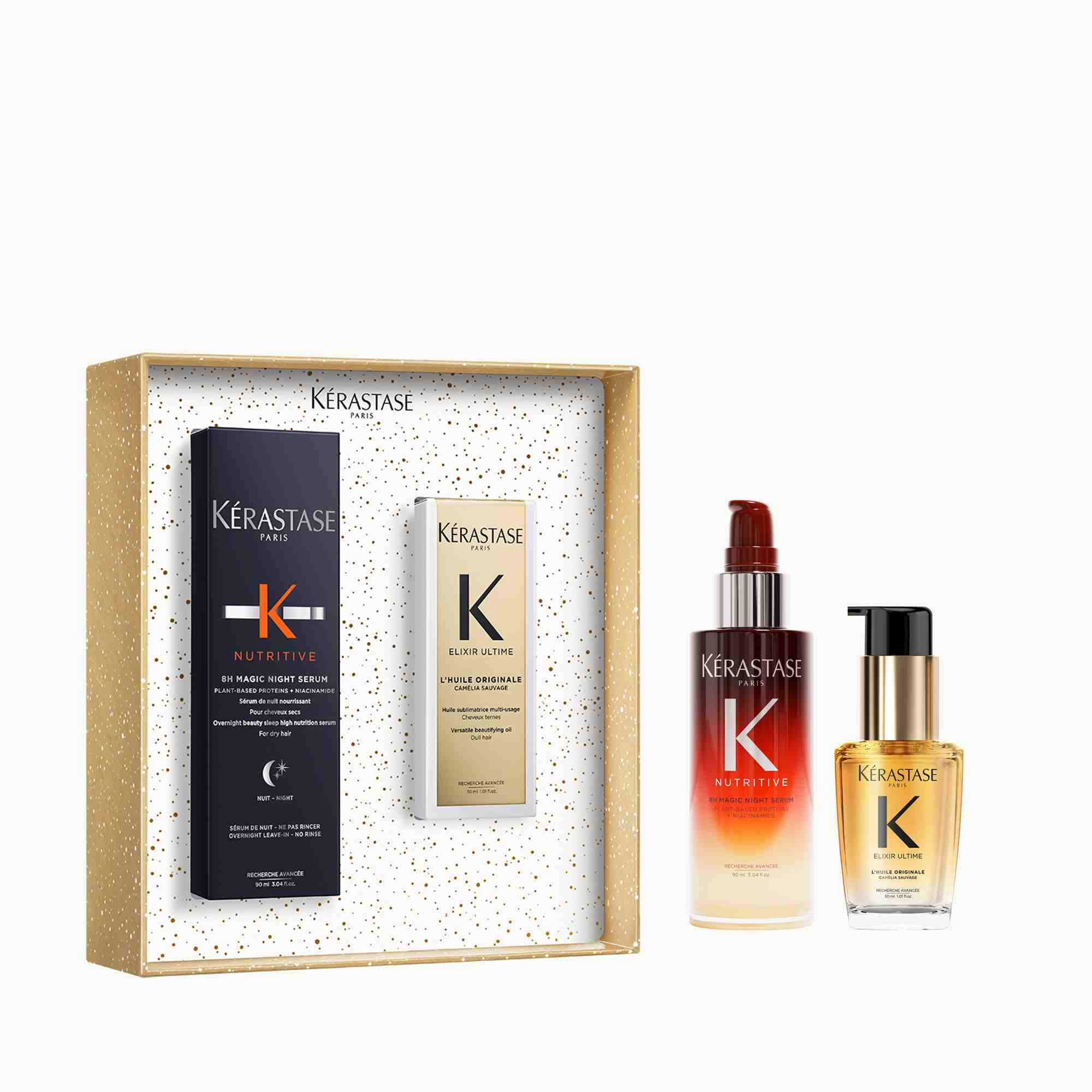 Set de sérum de noche y aceite capilar para potenciar el brillo y nutrir todo tipo de cabello, edición limitada.