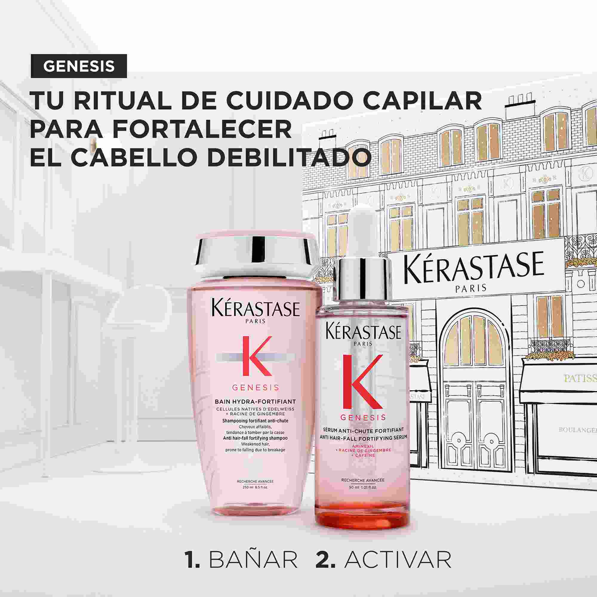 • Genesis Sérum Fortalecedor Anticaída Nuestro sérum fortalecedor anticaída con fórmula ligera para cabello debilitado propenso a la caída por rotura. Para uso diario.