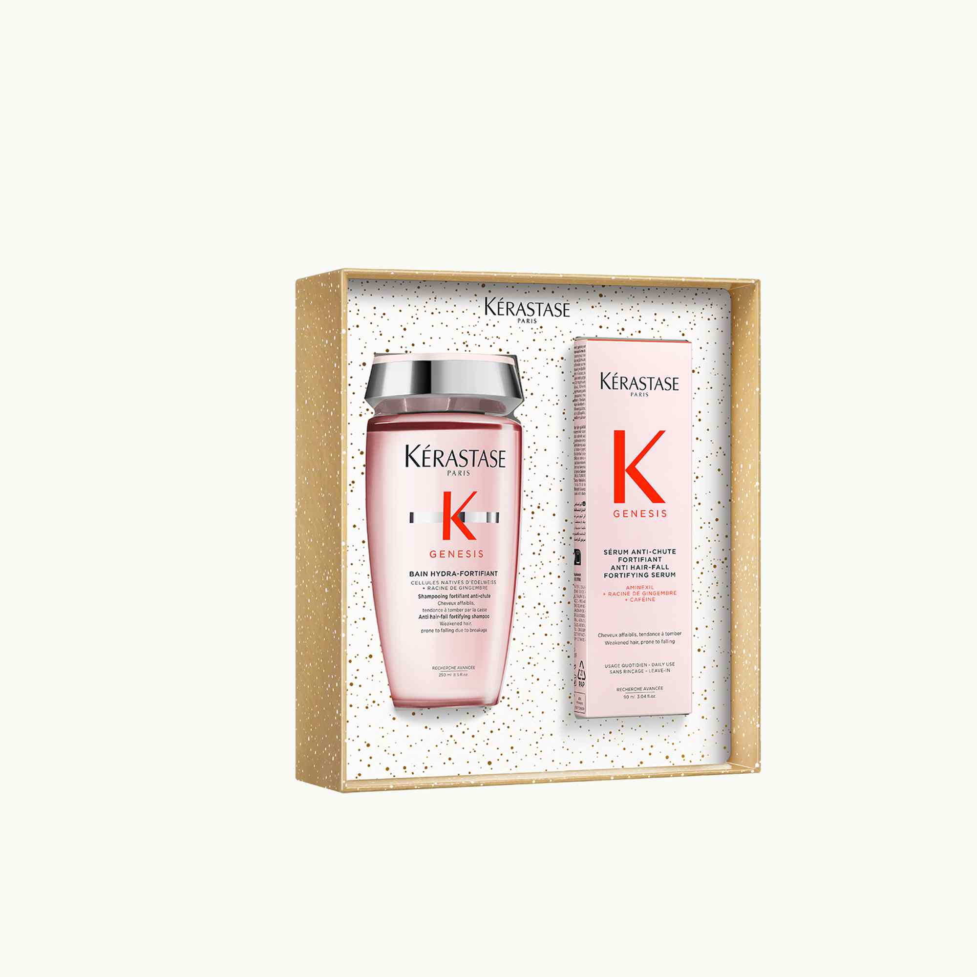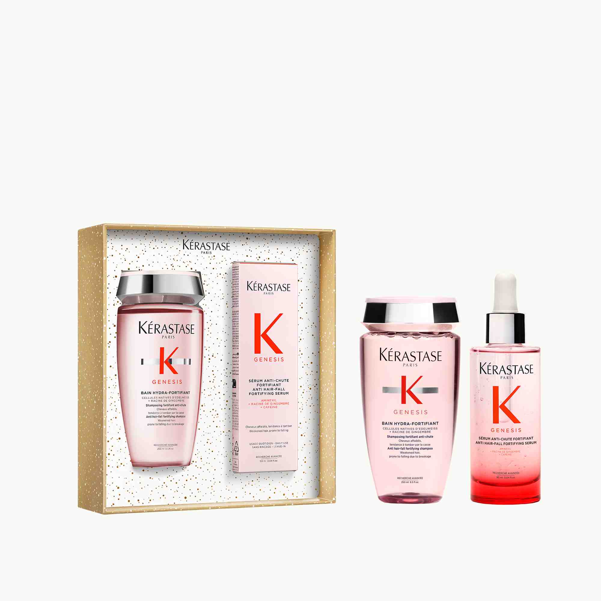Set de champú y sérum Genesis de edición limitada para regenerar el cabello debilitado y propenso a la caída por rotura.