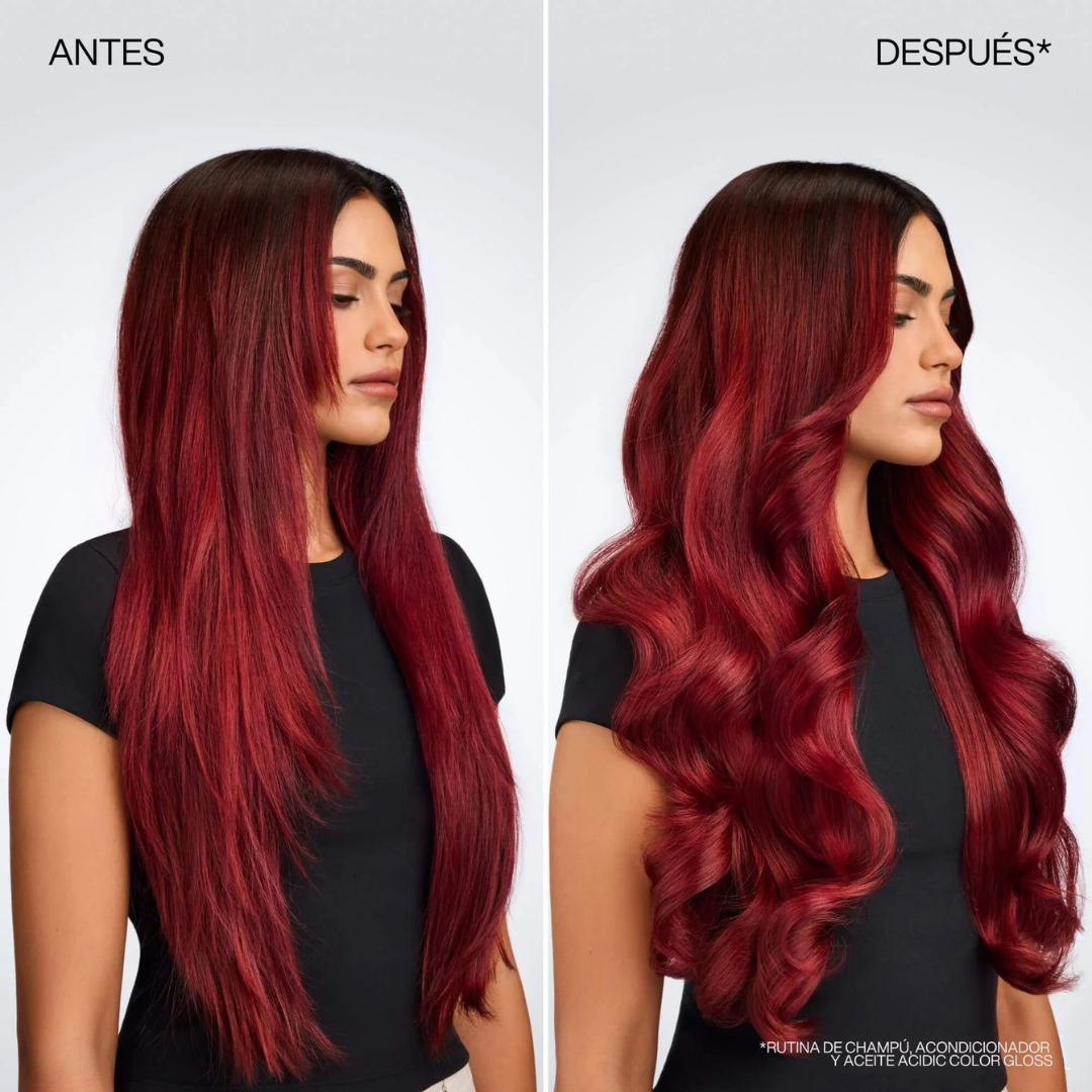 Consigue hasta un 130% más de brillo* desde el primer uso, controla el encrespamiento hasta por 72 horas y protege tu pelo del calor hasta 230 °C. Fragancia con notas de frutos rojos, jazmín y vainilla. Ideal para todo tipo de cabello, teñido o natural, sin aportar peso ni residuos.